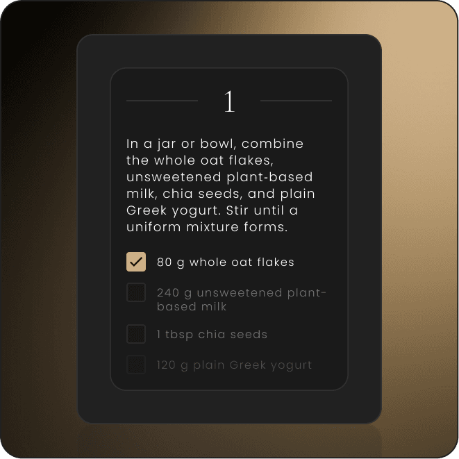 Step-by-step recipes with ingredients embedded at each stage, prep shortcuts, and timing tips so fueling fits seamlessly into training.